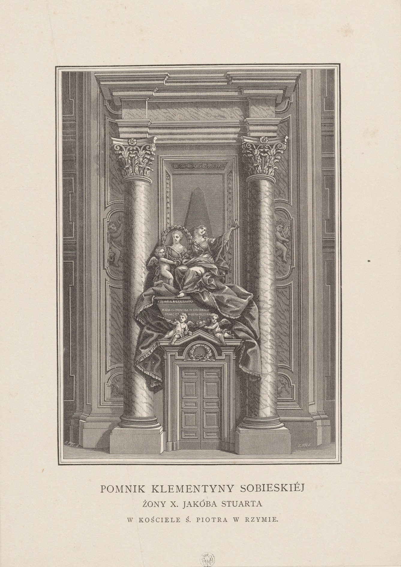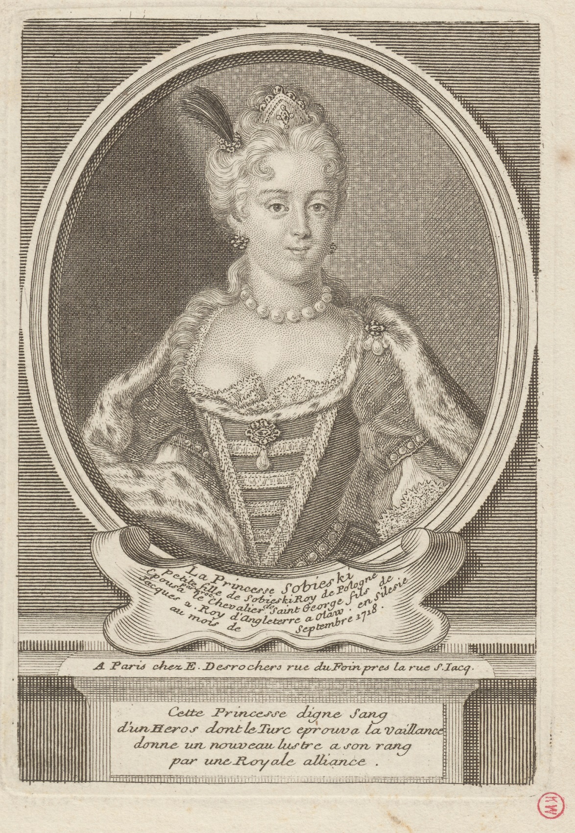 This depiction of the wife of the claimant to the thrones of England, Scotland, and Ireland appears on her monumental tomb of 1742, designed by Filippo Barigioni, in Saint Peter’s Basilica at the Vatican in Rome, the most important of all Catholic churches. The portrait on the tomb, held by a sculpted personification of Faith and a winged putto, was made as a mosaic by the Roman master Pietro Paolo Cristofari. The artist based the mosaic on the likeness of King Jan III’s granddaughter in this portrait by Lodovico Stern (1709–1777), a painter of Austrian origin, who moved to Rome around 1724.