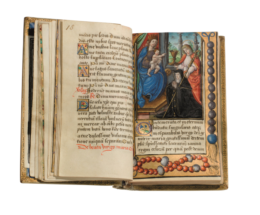 The book of hours, which was Mary’s personal prayer book from 1558 until her execution in 1587, is unique. It was created between 1535 and 1540 at the request of Louise de Bourbon-Vendôme, Abbess of Fontevraud, Mary’s maternal great-aunt. The miniatures in it are the work of one of the most accomplished artists employed by King François I: the Master of Archbishop François de Rohan (originally known as the Master of François I). The book was given to Mary on the occasion of her marriage to the Dauphin of France, who ascended the throne in 1559 as François II but died suddenly a year later.