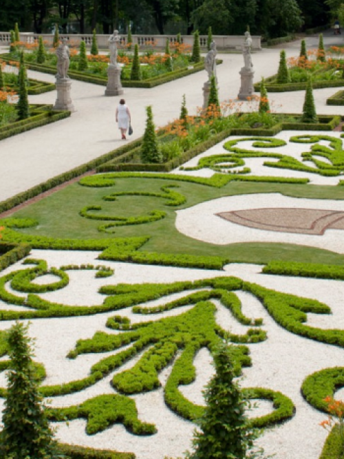 The park and gardens surround the palace on all sides. There is a Foreground in front of the entrance to the building. After crossing the entrance gate, the Courtyard comes into view. On the left side of the palace there is: the Northern Garden, behind it the Flower Garden at Figarnia and the Garden at the Orangery. Further north we will see the Northern Landscape Park and the Morysin Nature Reserve. Behind the palace, to the east, there is a Baroque Garden. On the right side of the building we will see: the Rose Garden, the southern landscape park, the western farm and the eastern farm.