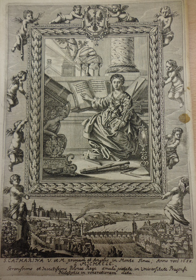 W 1656 roku młody książę został wysłany na studia do Pragi dzięki protekcji królowej Ludwiki Marii oraz wuja, Jana „Sobiepana” Zamoyskiego. Opiekę nad nim miał sprawować preceptor Felicjan Wąsowicz herbu Łabędź. Pobyt księcia na Uniwersytecie w Pradze trwał do początków 1660 roku, kiedy to z powodu zbyt dużych kosztów utrzymania, na polecenie królowej, został sprowadzony do kraju. Warto wspomnieć o niezwykłym darze, jaki młody książę sprezentował władzom uczelni w 1658 roku, a który po dziś dzień uważany jest za najcenniejsze dzieło sztuki posiadane przez Uniwersytet Karola. Jest to słynny czeski obraz świętej Katarzyny Aleksandryjskiej (olej na płótnie, wym.: 233 x 143,5 cm) – patronki wydziału filozoficznego. Przedstawiono na nim św. Katarzynę Aleksandryjską jako młodą księżniczkę siedzącą na podwyższeniu, z atrybutami patronki nauki (teleskop, kwadrant, cyrkiel, zwierciadło) i odwołaniami do jej męczeńskiej śmierci (katowskie koło do łamania). Święta w lewej ręce trzyma miecz i gałązkę palmową, prawa jej ręka spoczywa na otwartej księdze z łacińskim tekstem listu św. Pawła do Rzymian (Rz. 1, 19-22). Za nią na niskim murze znajdują się: sfera armilarna, ziemski i niebiański globus oraz figura kobiety na podwyższeniu tworzącym stopnie piramidy. Obraz ten, namalowany przez wybitnego przedstawiciela czeskiego malarstwa barokowego Karela Škrétę (1610-1674), wymieniany był w inwentarzu uniwersyteckim z 1673 roku (in aula magna Carolinae sunt dua imagines, una S. Joannis, altera S. Catharinae, manu domini Screta picta). Dzieło Škréty, jak podaje inwentarz, zdobiło wielką aulę Karolinum i dodawało splendoru zacnym murom tej uczelni.