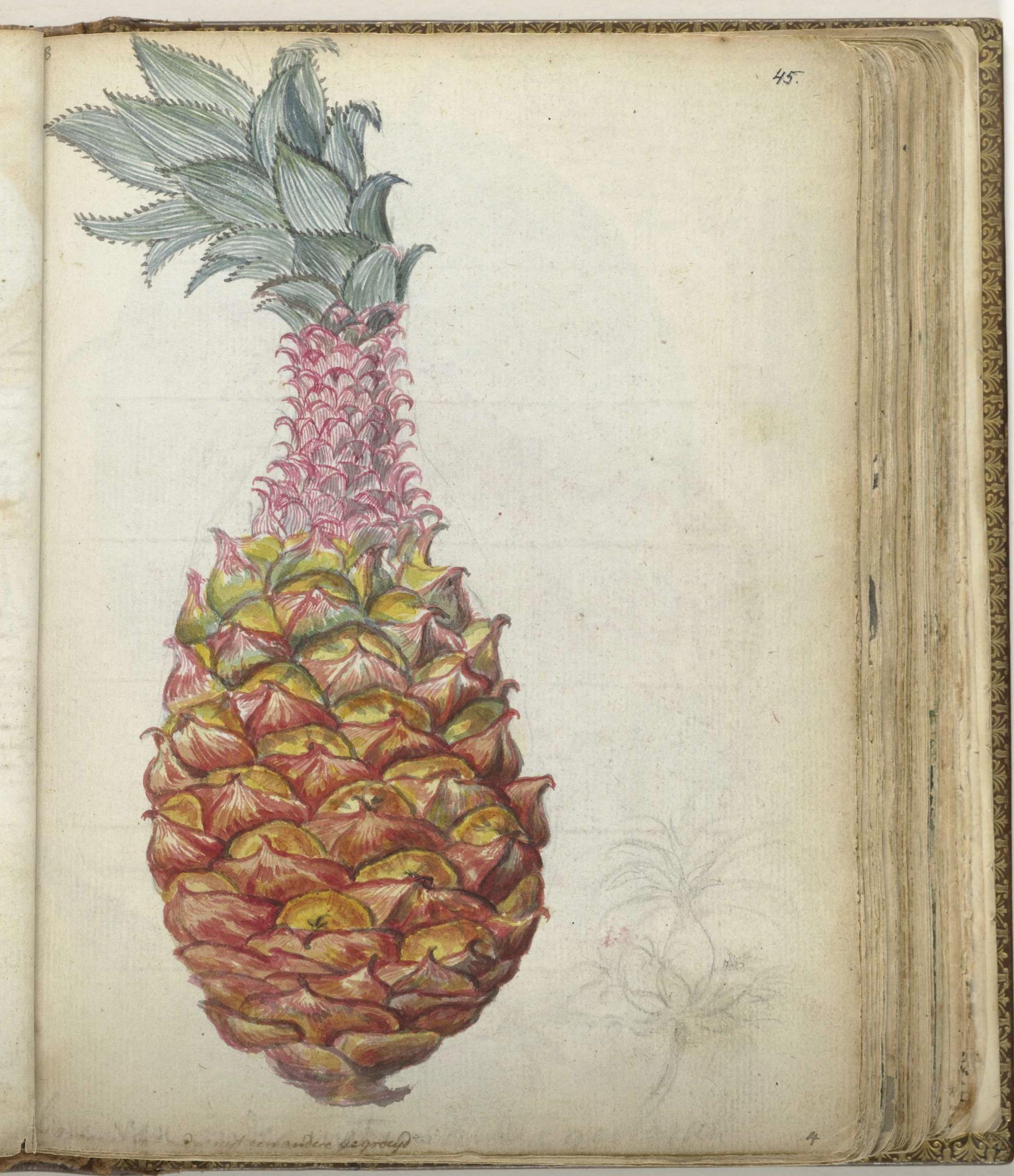 [2] Autor najpewniej się myli, ponieważ ananas pochodzi z kontynentu amerykańskiego. Być może miał jednak na myśli Indie Zachodnie – popularną wówczas zbiorczą nazwę wysp położonych między Morzem Karaibskim a Oceanem Atlantyckim.