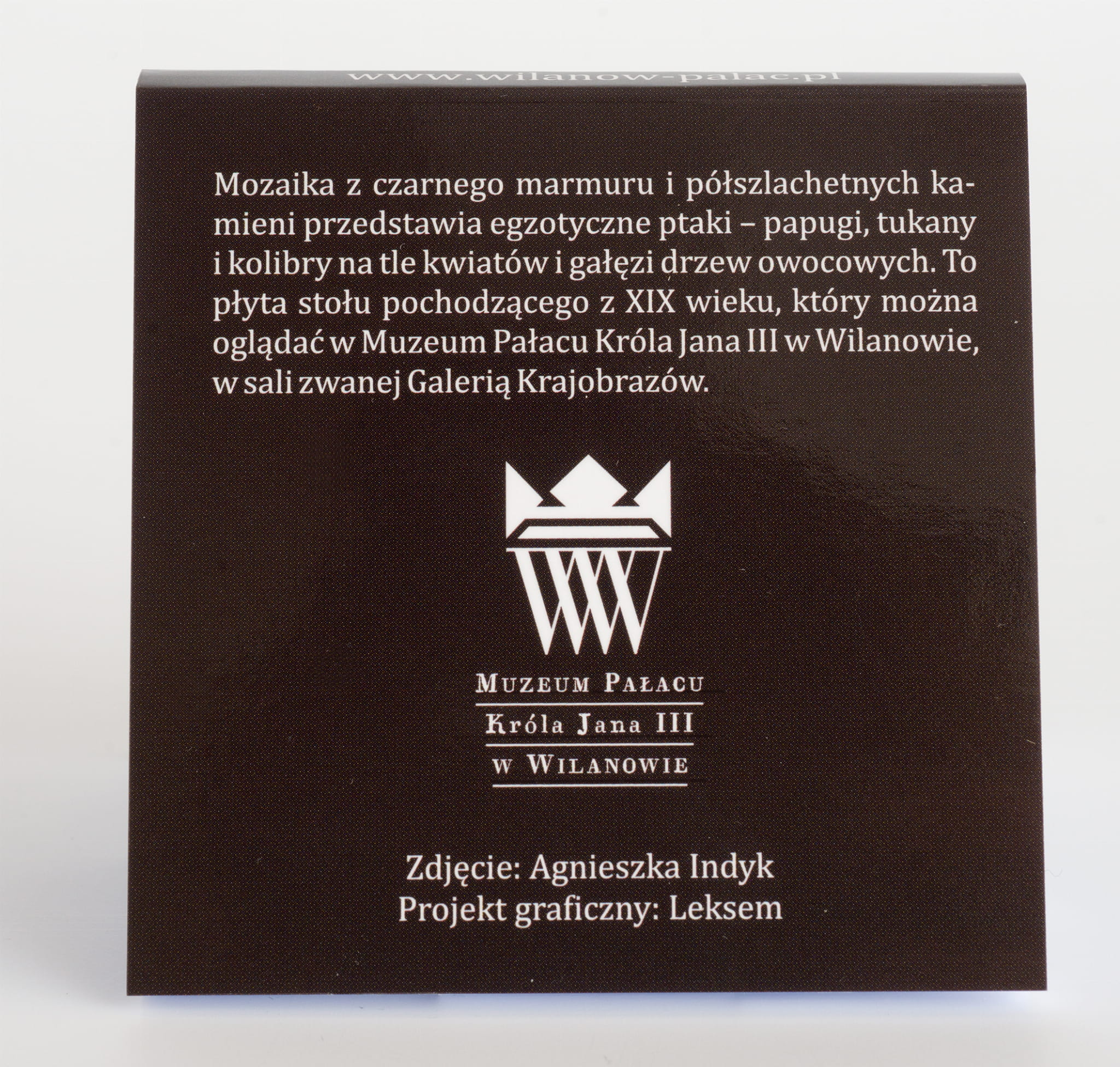 Karteczki samoprzylepne z widokiem fragmentu marmurowego blatu stołu znajdującego się na parterze pałacu wilanowskiego w cześci nazywanej Galerią Krajobrazów.
