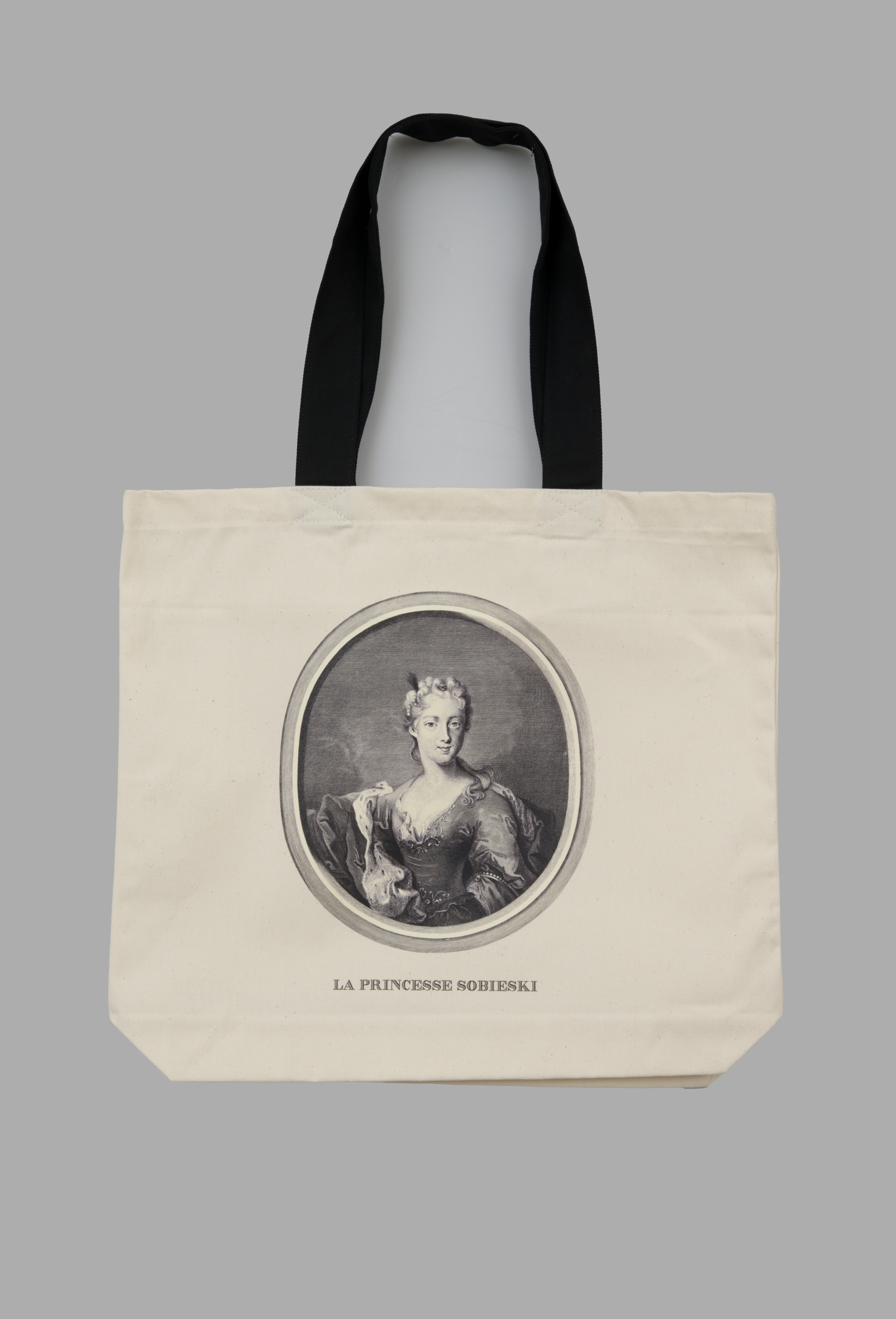 Torba bawełniana z nadrukiem przedstawiajacym wizerunek Marii Klementyny Sobieskiej.