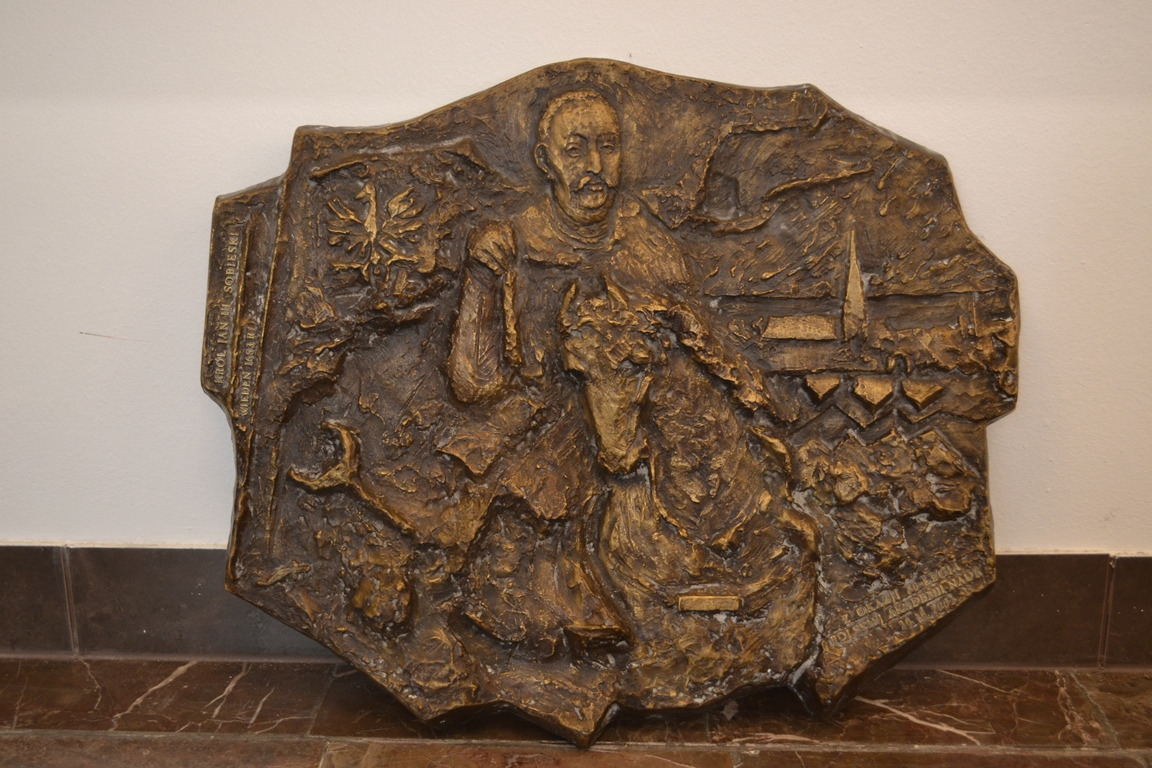 • Zdjęcie przedstawia płaskorzeźbę, która znajduje się w sali konferencyjnej w Stacji Naukowej Polskiej Akademii Nauk. Jest to przedstawienie Jana III Sobieskiego na koniu. Po lewej stronie orzeł  w koronie.
